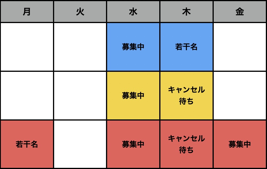 *キャンセル待ちの方は、空きができましたらご案内をさせていただきます。